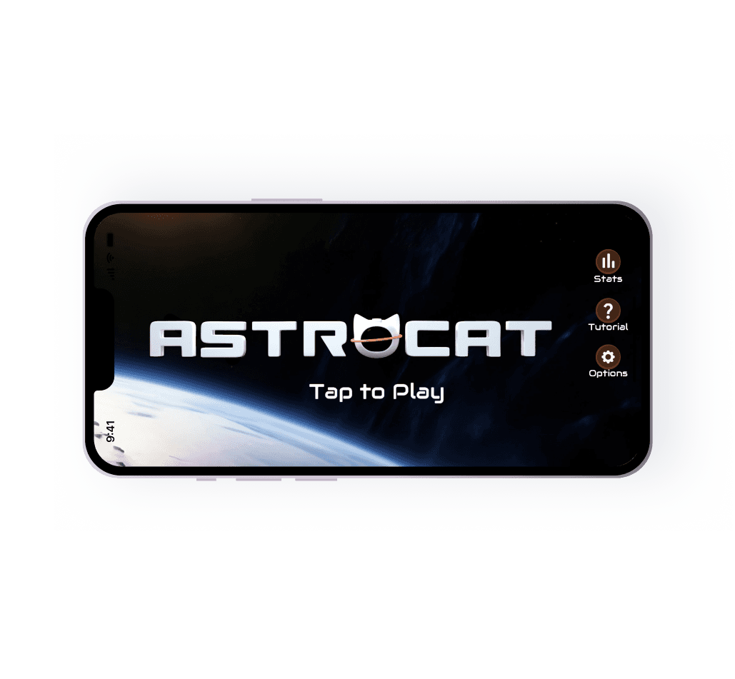 Design a user-friendly mobile interface for AstroCat—a free, engaging endless shooter with kawaii 3D visuals. The goal: intuitive gameplay, clear objectives, and strong player retention.