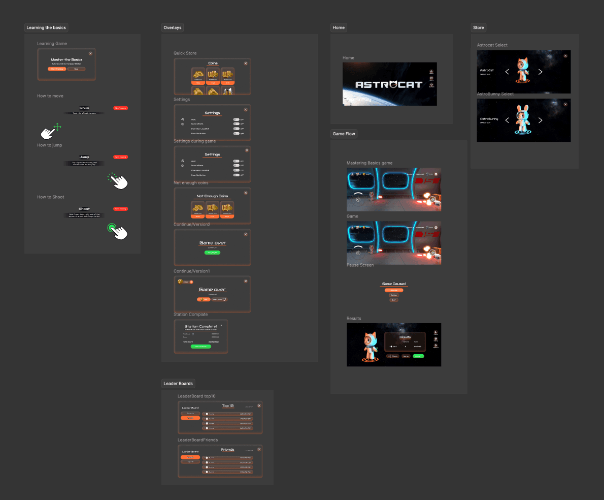I conducted desk research across mobile endless runners and arcade shooters. This helped identify what resonates with players and where AstroCat could stand out. The findings directly influenced both the interface and gameplay feel.