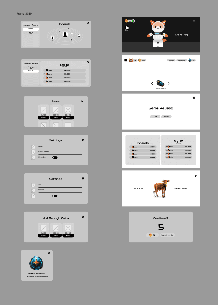 I designed a UI system that reflects AstroCat’s personality—playful, spacey, and user-friendly. Every element supports the game’s visual identity while keeping usability front and center.
