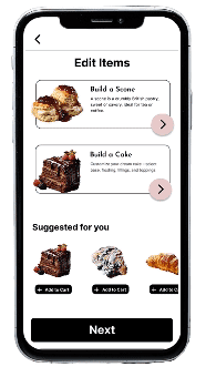 Following the study, I added item photos, clarified the selection indicator, and introduced a fun animation where items move into a box or bag when added to the cart. These small updates made the app more engaging and intuitive for users.