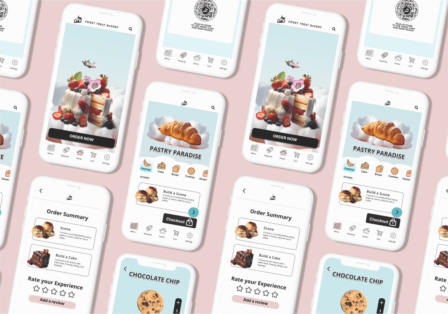 The Sweet Treat Bakery app prototype showcases a fast and user-friendly ordering experience tailored to high-tech families and busy professionals.