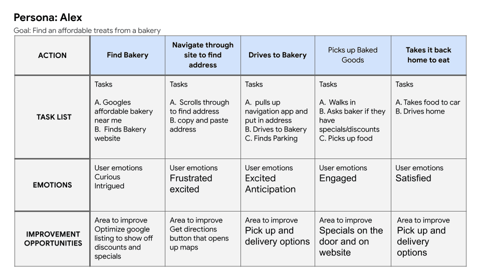Created journey maps to identify pain points in traditional bakery app navigation and highlight the need for seamless ordering, digital wallet integration, and accessible options for busy schedules.